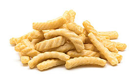 Crispy Chips Bugles Sticks Machine es una línea de productos versátil que utiliza tecnología de extrusión de doble tornillo para producir una variedad de chips de diferentes formas.Al cambiar el molde y las máquinas de formación y corte, es posible producir chips en una variedad de formas, incluidas tiras, láminas cuadradas onduladas, láminas de diamante, almohadas y triángulos.Los chips Crispy Rice, Salad Chips y Bugles son todos variados, y el sabor es crujiente y no grasoso. Se dice que los chips resultantes son crujientes y no grasosos, que son cualidades deseables en los bocadillos.