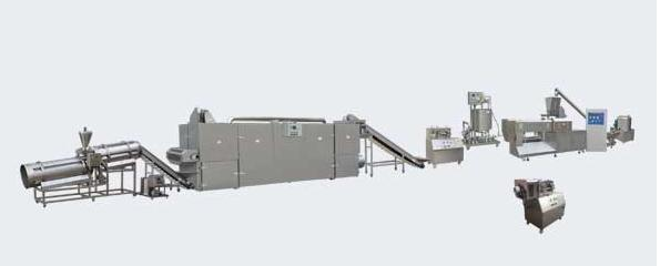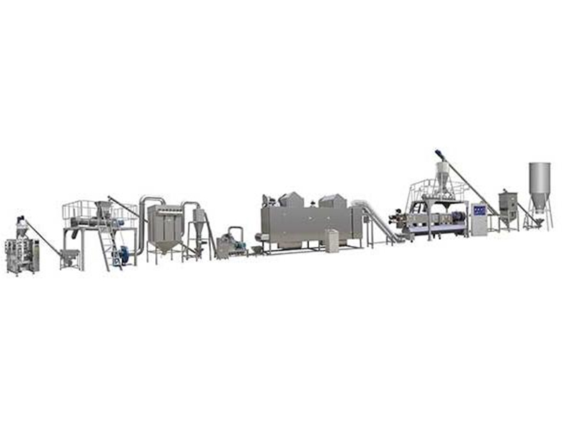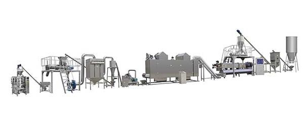 La línea de producción tiene un diseño completamente apto para uso alimentario, y el tornillo de la extrusora de inflado está hecho de material 440C, que cumple con los estándares de seguridad de producción de alimentos para la producción de alimentos infantiles.