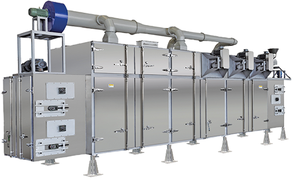El principal campo de aplicación del secador de circulación cruzada es el tratamiento de secado de material de los alimentos hinchados de carne alta fresca, alimentos horneados y otros alimentos secos para mascotas, productos acuáticos y alimentos acuáticos especiales, proteínas vegetales con procesos secos y bocadillos de ocio hinchados. Puede resolver efectivamente la maduración y el secado de la alimentación acuática hinchada, el alimento para pellets o los alimentos, para que los gránulos puedan lograr la resistencia ideal del agua y mejorar la calidad de apariencia de los gránulos. La secadora tiene un sistema de circulación de aire caliente, que tiene bajo consumo de energía, bajo costo y buena confiabilidad. Además, también está equipado con un distribuidor ajustable y un dispositivo de distribución uniforme para hacer que la distribución del material sea más uniforme y garantizar la uniformidad de los materiales secos.