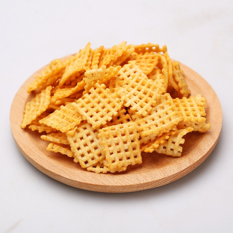 Cuando la corteza de arroz frito salga de la sartén, se sazonar uniformemente en un cubo octogonal.Después del pesaje, el empaque es el producto terminado.