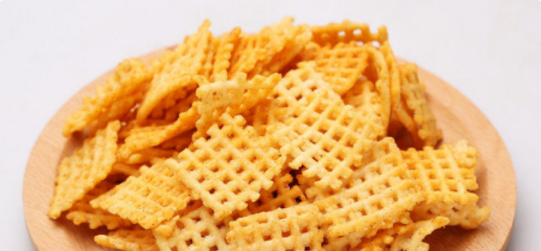 Mezcla de materias primas → agitación con agua → inflado → enfriamiento → corte → fritura → condimento → pesaje → envasado → producto terminado
