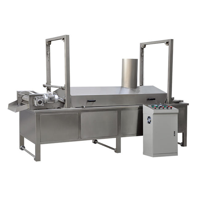 La freidora continua es un equipo industrial especializado que se utiliza para producir una amplia variedad de alimentos fritos, como maní fritos, papas fritas, papas fritas y papas fritas. Por lo general, se usa en líneas de producción automatizadas, como la línea automática de producción de maní frito o la línea de producción automática de papas fritas. La freidora está diseñada para alimentar continuamente productos alimenticios crudos en el área de freír, donde están sumergidos en un baño de aceite calentado para cocinarlos a la perfección. La máquina también está equipada con tecnología avanzada, como el control de temperatura y los sistemas de filtración de aceite, que aseguran que los productos alimenticios se cocinen a la temperatura óptima y en aceite limpio, proporcionando un producto seguro y de alta calidad. También incluye un sistema de desembolso que elimina el exceso de aceite de los productos alimenticios, dejándolos con una textura crujiente y deliciosa. Es un equipo rentable y eficiente que puede usarse en varias industrias.